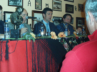 El cartel anunciaba al ganadero Román Sorando y al Maestro Joselito.Verdaderamente es de agradecer que las figuras,los maestros se presten a compartir un tiempo con los aficionados,y pienso igualmente que los ganaderos.La tertulia fue presentada por Ángel del Arco,justo la noche anterior a recibir la medalla de plata al mérito taurino en Madrid.