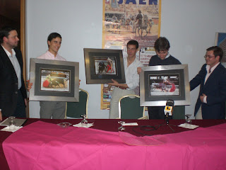 «El Sombrerero», Alberto Lamelas y José Carlos Venegas recibieron como recuerdo una foto de cada uno tratada artísticamente por Paco Cuenca, realizador de Localia Jaén TV.