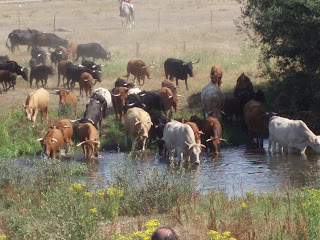 Vacas viejas, becerros, caballos, vaqueros. Cosa impresionante. Vivirlo para contar algo que tampoco puede contarse fácilmente. Tuve la suerte de volver a montar a caballo después de algún tiempo y por unas horas, con mi gorra, mis botos bien engrasados, el caballo y la garrocha me sentí completamente como un mayoral.