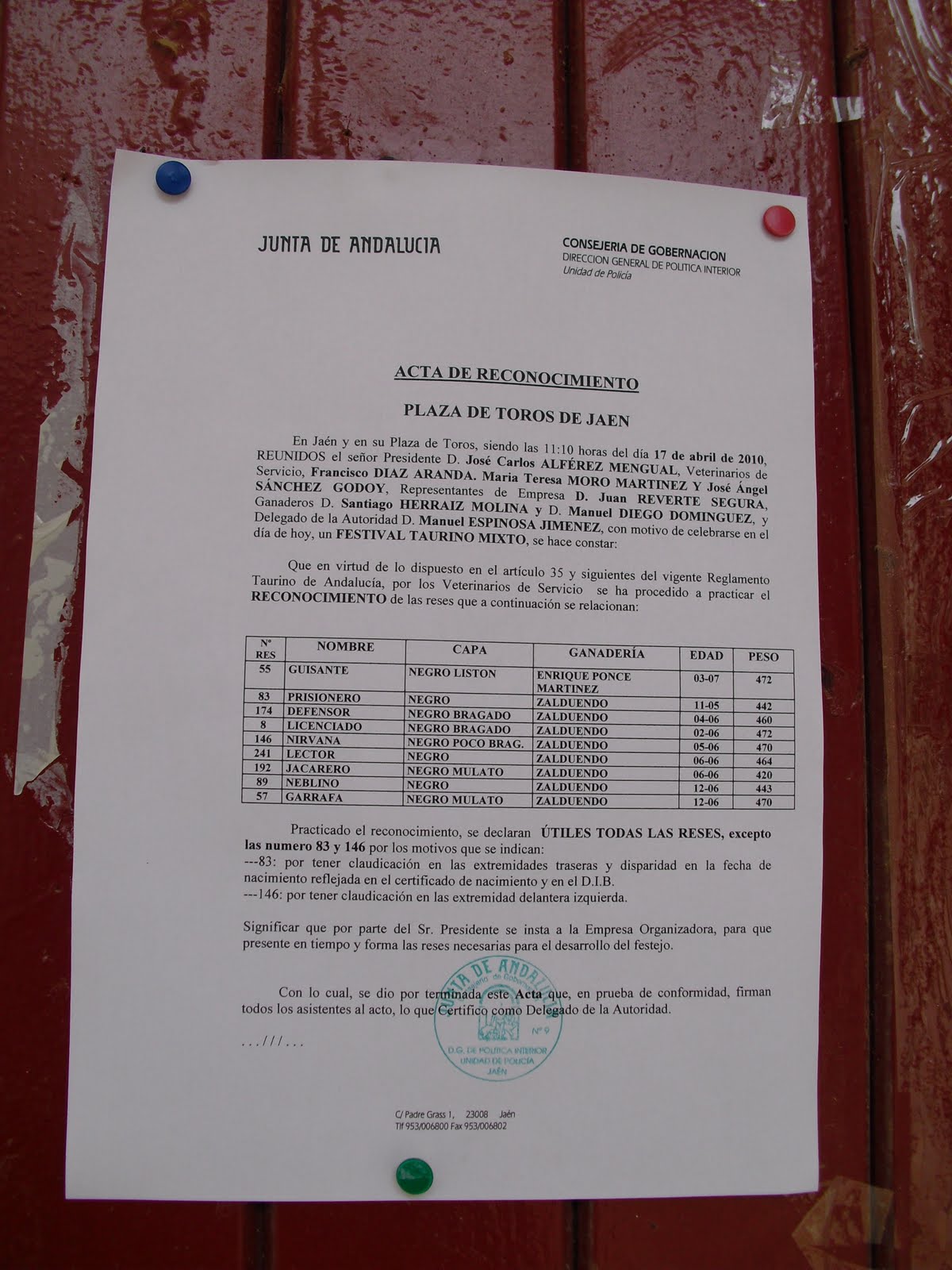 Por otra parte, un novillo de Enrique Ponce ha sido aprobado tras ser rechazados previamente dos reses de Zalduendo en el reconocimiento.